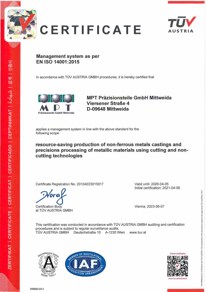Adicionalmente, a MPT Group é também certificada nas seguintes Normas: